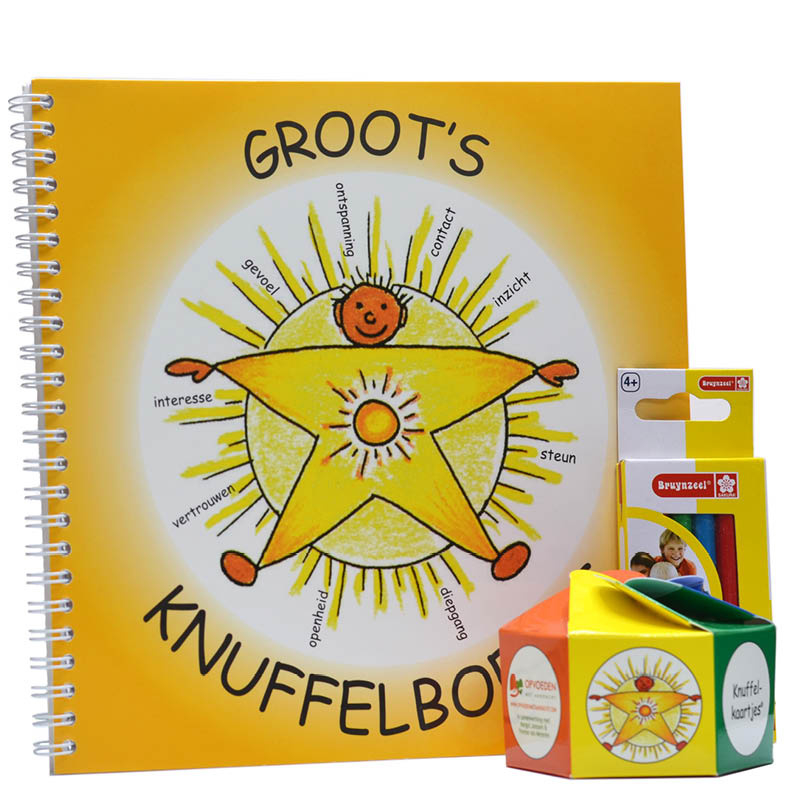 OverzichtKnuffelkaartjes + Werkboek: 52 illustratieve kaarten met prikkelende zinnen en een rijk geïllustreerd werkboek vol vragen en opdrachten. Verpakt in een stevig koffertje met kleurpotloden.
