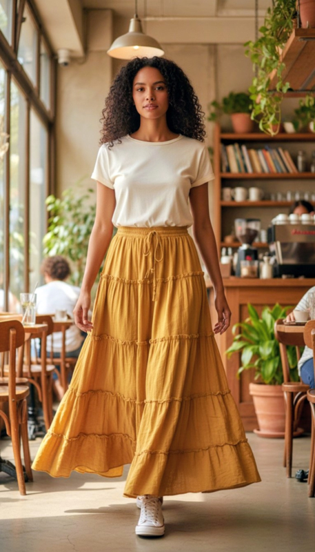 Thaise strokenrok / GeelThaise strokenrok van 100% (zacht) katoen